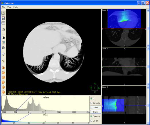 | 2. | [Dose] | 患者データおよび線量データを表示 |