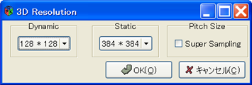 | [Dynamic]で回転時の解像度を設定します。 また、[Static]で静止時の解像度を設定します。 [Super Sampling]にチェックを入れるとサンプリング間隔を1/2に(サンプリング方向の解像度を2倍)に設定します。 [OK]ボタンをクリックすると設定を反映してウィンドウを閉じます。 |