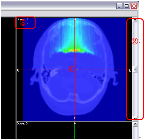 | 3. | 線量表示 | マウスカーソル位置の線量が表示されます。 |